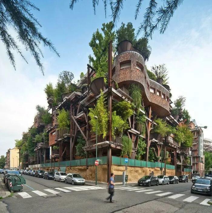意大利都靈城市中心的Verde公寓在樓上種了150棵樹外形類似兒時(shí)童話書中的樹屋。獨(dú)特的立體綠化布局讓這座建筑成為都市中心的森林居所。