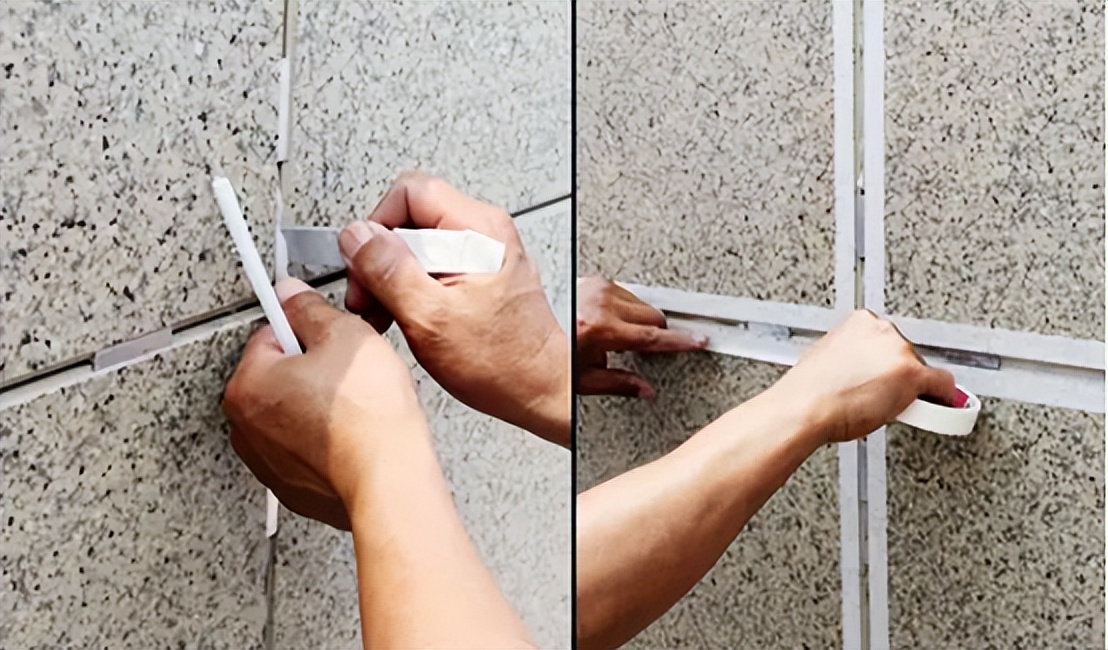 用膠槍裝上耐候膠(硅酮膠)進(jìn)行密封、勾縫處理,修刮平整后撕下美紋紙。